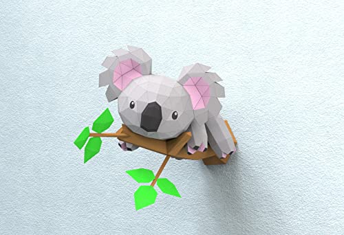 Koala on Branch Paper Sculpture,Pre-cut DIY Papercraft Kit,Handmade Wild Animal Figurine,3D Paper Art,Low Poly Wall Decor,All Accessories Included,DIY Teens Gift