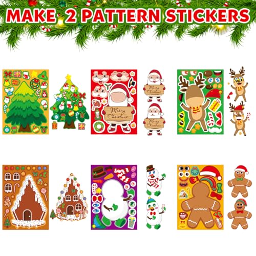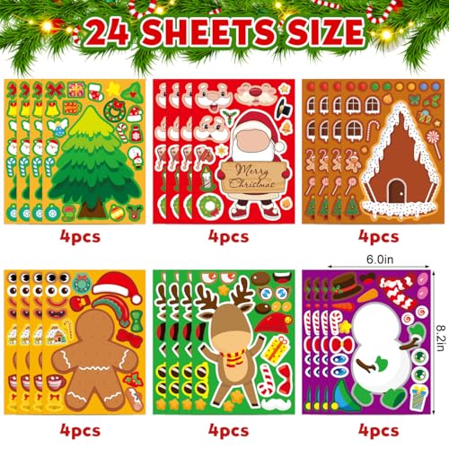 Christmas Stickers for Kids Stocking Stuffers: 24 Sheets Make Sticker Yourself Christmas Santa Snowman Stickers for Kids Christmas Crafts Party Supplies Holiday Stickers Bulk Classroom Activities