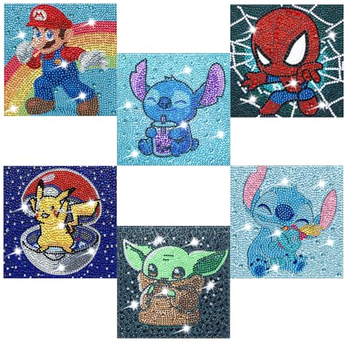 5D Diamond Painting Kits for Kids,DIY 6 Pack Diamond Art Kits for Kids 9-12 Girls,Paint by Diamond Dots Big Gem Arts for Kids 6-8-10 Boys 6×6 inch