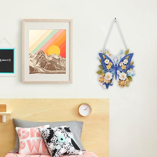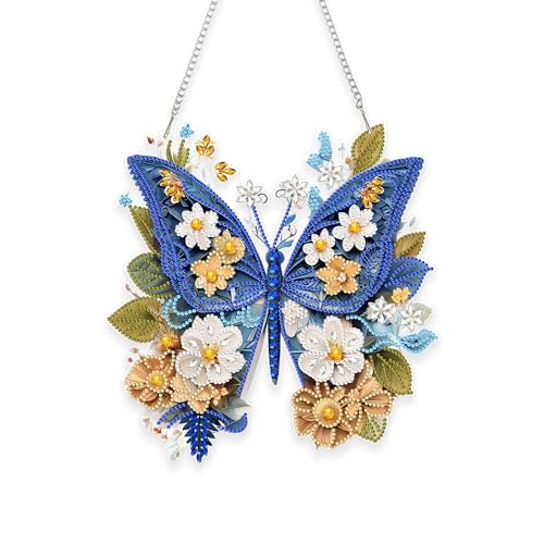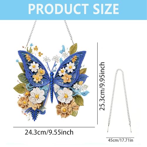 DIY Hanging Diamond Art Pendant Painting Kit Butterfly, Acrylic Board Ornament Gem Painting Craft Kit for Window Suncatcher, Box Package,9.5×10.0inch