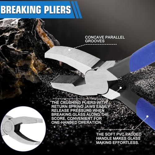 【Running and Breaking Pliers】 Glass Running Plier has Adjustable set screw allows you to control the amount of pressure applied, set screw is easy to adjust, and properly tapped; you can use them on different thicknesses of glass. Glass Breaking Pliers are quality designed to help break glass along a score line or can be turned over and used a grozers to nibble glass away from the edges.