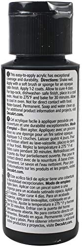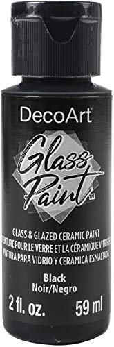 DecoArt Glass Paint in ideal for glass and ceramics. The brush on formula self levels, resulting in a smooth even finish. It can be baked for a dishwasher safe finish. This package contains one 2oz bottle of glass paint. Made in USA.