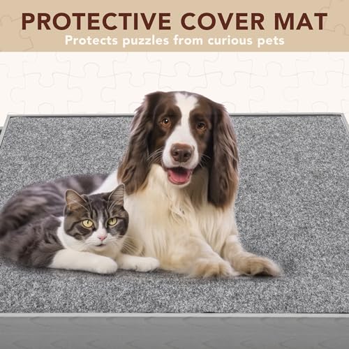【 Protective COVER 】 Our jigsaw puzzle board comes with a felt fabric cover mat protects unfinished puzzles from curious pets. No nails and no splinters ensure safe use.