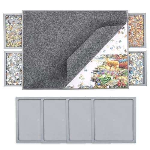 ropoda 1500 Pieces Portable 35″x26″ Plastic Puzzle Board with Drawers and Cover, Lightweight Design Puzzle Board Jigsaw, Puzzle Table for Adults