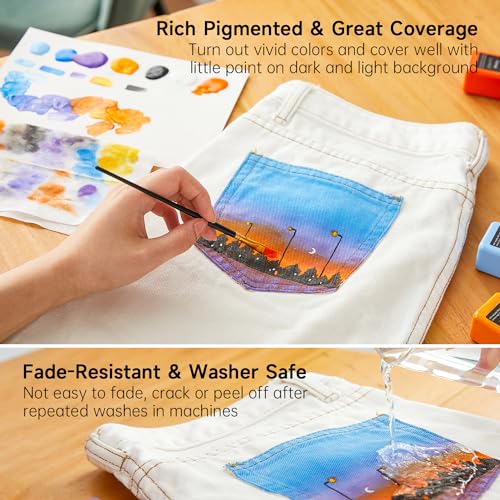 PERMANENT & WASHER SAFE : Easy to blend and cover, stay permanent and won’t crack or peel, durable enough to hold up extensive wear and repeated washes in the washing machine and dryer. Shuttle Art clothing paints are also ready to use, do not need extra textile medium or heating