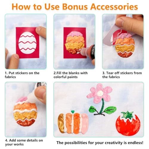 EASY AND SAFE FOR USE :These 3D Fabric Paints features precision bottle tip design which makes them super easy to squeeze and apply. Non-toxic and Odorless, Conforms to ASTM- D4236 and EN71, these 3D Fabric Paints are safe for both kids and adults