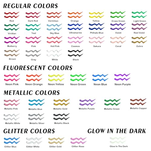 45 VIBRANT COLORS :Shuttle Art Fabric Paint Set contains 45 vivid and attractive colors including 25 classic, 6 neon, 4 glitter, 9 metallic and 1 glow in the dark color for your creative needs, especially for drawing, doodling, DIY projects, customizing t-shirts, shoes ,caps and so on
