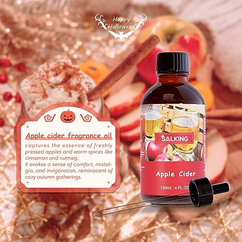 SALKING Apple Cider Fragrance Oil, 120ml (4 Fl Oz) Premium Essential Oils for Diffuser, Candle Scents for Candle Making, Soap Making Supplies, Autumn Scented Diffuser Oil, Halloween Thanksgiving Gift