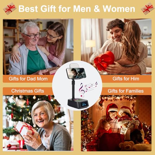 Gifts for Men Women, Phone Stand with Bluetooth Speaker, Birthday Gifts Him Her, Adjustable Height Phone Holder with HD Stereo Sound Fits All Phones &Tablet, Unique Gifts for Dad Mom Christmas