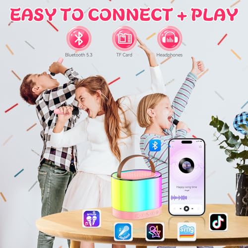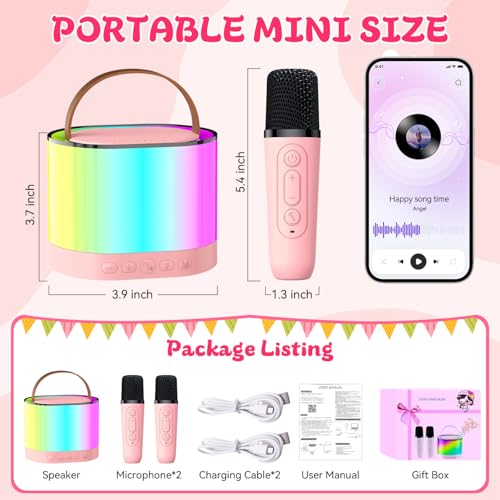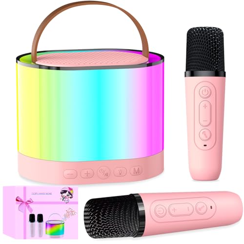 Mini Karaoke Machine with 2 Wireless Microphones for Kids Adults, 2025 Popular Portable Bluetooth Speaker Gift for Girls Toys 4, 5, 6, 7, 8, 10, 12+ Years Old Teens Birthday (Pink 2 Mics)