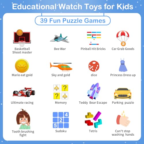 Phyulls Smart Watch for Kids with 39 Games Alarm Clock, Touchscreen, Calendaring Camera Music Player Time Display Video & Audio Recording, Toys for 3-12 Years Old Boys