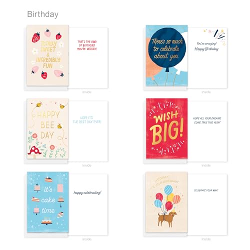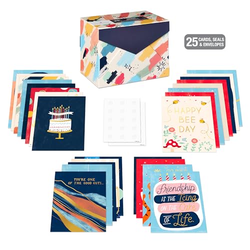 American Greetings 25-Count Birthday Card Assortment with Envelopes, Seals, and Storage Box (Wish Big)