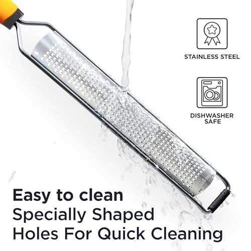 Improve Your Cooking ✔ Amaze your friends with new, restaurant-like recipes. Add strong new flavours with fresh lemon zest without any bitter pith taste. When using the chef zester with hard cheeses such as parmesan, you’ll get a nice pile of grated cheese that melts almost instantly on hot pasta.