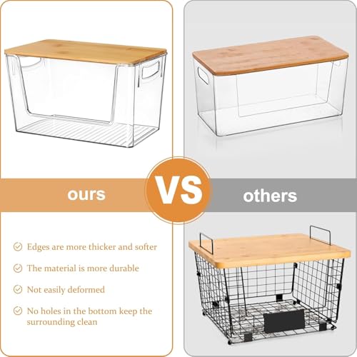 Bamboo Lid with Front Opening: This storage bin features a convenient front opening and is topped with a durable bamboo lid. The lid design allows for easy access to the contents while adding a touch of natural elegance to your space.