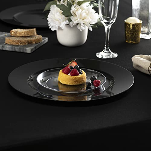 13” Charger Plates Black Plastic Heavy Duty Disposable Dinner Chargers Serveware Dishes Platters Tableware Pack of 12