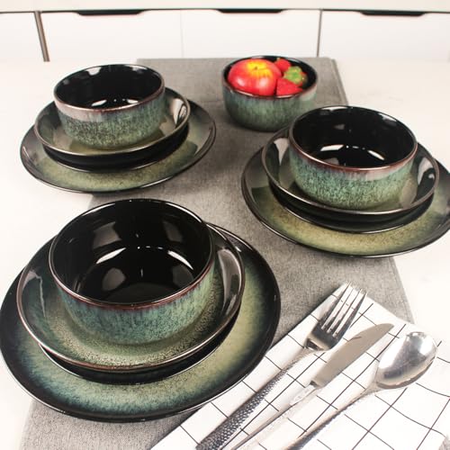 jinsongdafa Dinnerware Sets 16 Pieces – Round Reactive Glaze Tableware – Kitchen Dinnerware Porcelain Crockery with Dinner Plate, Bowl and Soup Plate Service for 4, Microwave Dishwasher Safe Reactive Glaze – Our products are a unique glaze color, glaze color change (Chinese jun glaze ceramic) process has a thousand years of time, very beautiful; Fambe Reactive Glaze Craftsmanship, The biggest feature of this process is the color of each product is unique and cannot be copied. Due to a certain temperature difference during firing, the same color material is used to produce ,finally maybe will have 3-4 colors which is different. Modern Design – The Round modern design, Crafted with a reactive glaze, We will develop this technology into more utensil types and have more reactive glazed tableware, plates, bowls, etc. in the store, Welcome to enter the store to buy, adds a touch of sophistication to your existing dinnerware collection. creating a soft and natural visual appeal that captivates your guests, The unique glaze color showcases exceptional craftsmanship, combining colors to the extreme within the scope of artistry. Practical 16-Piece Set – The Ceramic Tableware set includes 4-pcs 10.6″(27 CM)dinner plates; 4-pcs 7.9″(20 CM)Small plates; 4-pcs 8.3″(21 CM)Salad plates capacity 18 Ounces(550 ML); and 4-pcs 5.5″Cereal/Soup bowls capacity 20 Ounces(600 ML), catering to your dining needs with versatility and functionality. Safe for Everyday Use – Crafted from healthy stoneware, this dinnerware set is non-toxic, lead-free, and cadmium-free. It guarantees food safety without any chemical reactions or transfers of odors, colors, or flavors, You Buy with Confidence. Makes a Great Gift – Whether it’s a gift for yourself or for someone you love, our packaging ensures a beautiful aesthetic the second it arrives at your door. we strive to improve our quality and packaging quality to ensure that each product is delivered to you safely.