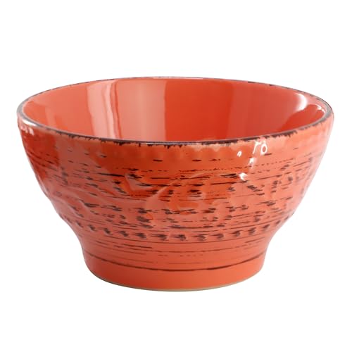 Elama Malibu Jasper 16-Piece Stoneware Embossed Pattern Reactive Glaze Orange Dinnerware Set, Tableware, Serveware Set (Jasper Orange)
