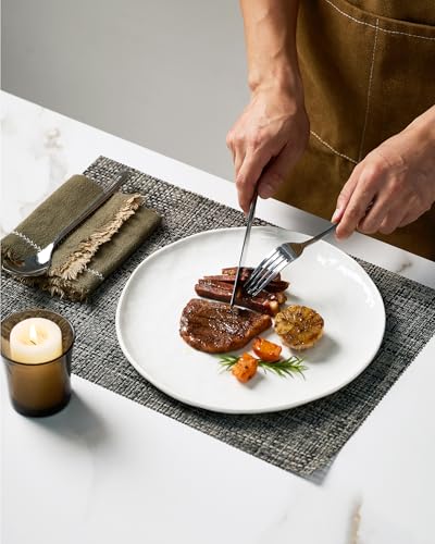 【Premium Material & Durability】Crafted from premium white porcelain, this lead-free, cadmium-free, and BPA-free dishes set ensures safe with durability. The high-fired porcelain’s weight and thickness resist chipping, scratching, and daily wear, keep the ceramic dinner plates always glossy and durable.