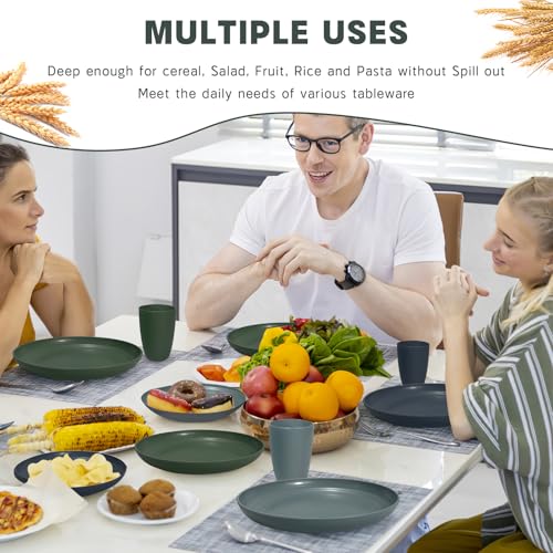 Natural Material: The wheat straw tableware set is made of natural wheat straw and PP material, safe and odorless, So HANMFEI plastic dinnerware sets are unbreakable instead of the conventional crystal or porcelain dinnerware,you don’t worry about shattering when dropped and bumped. It’s sturdy,lightweight,durable,safe and healthy for everyone to use, especially for kids and the elderly.