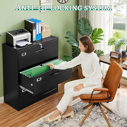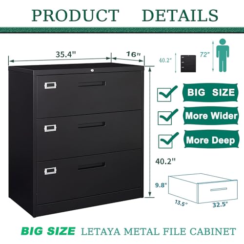 Letaya Lateral 3 Drawer File Cabinets with Lock, Metal Filing Storage Vertical Cabinets,Home Office Furniture for Organization Hanging Letter/Legal/F4/A4(Black)