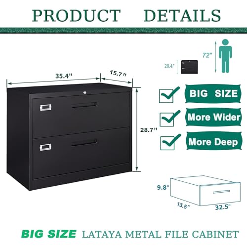 Letaya Metal Lateral File Cabinets with Lock,2 Drawer Steel Wide Filing Organization Storage Cabinets,Home Office Furniture for Hanging Files Letter/Legal/F4/A4 Size (Blcak-2 Drawer)