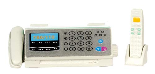 1:12 Scale Fax Machine & Telephone by Miniatures World. Designed for the 1:12 scale miniature setting. Perfect for the home office! Made of plastic and a sticker. There is a clear plastic sheet over the sticker of the fax machine. This is protecting the sticker. Can be removed when received. Both receivers are removable. Fax machine measures : 5/16 of an inch tall x 1 7/8 inches wide x 1 1/8 inches deep. Cordless phone w/base measures : 15/16 of an inch tall x 5/16 of an inch wide x 5/16 of an inch deep.