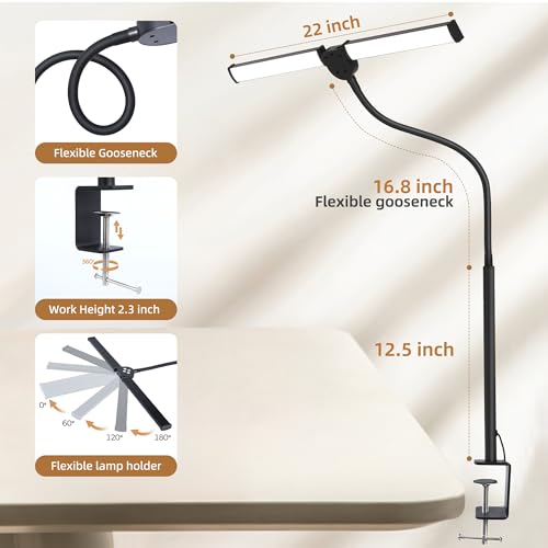 【Long Flexible Gooseneck & Space Saving】 The sturdy clamp and the long, flexible gooseneck arm allow you to place it almost anywhere and direct the light where you need it. It’s the perfect way to illuminate your desk without compromising space.It provides an optimal lighting environment for work, reading, studying, drawing, sewing, and crafting.