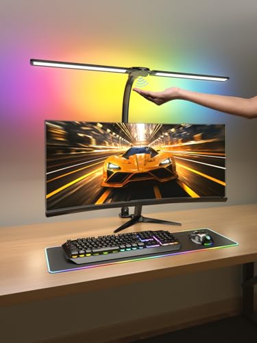 Radlfut RGB Double Swing Arm Desk Lamp – 24W Ultra Bright Auto Dimming Desk Light, Multi-Angle Adjustment, Touch Control Desktop Lamp- Ideal for Home Office, Gaming, Reading, Work