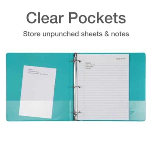 Each 1.5″ binder holds 350 sheets; two clear interior pockets store handouts and small, loose documents