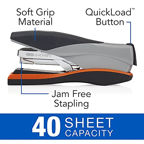 Swingline Stapler, 40 Sheet Capacity, Optima 40, Jam Free, Reduced Effort, Soft Grip, Metal, Orange and Gray (87845)