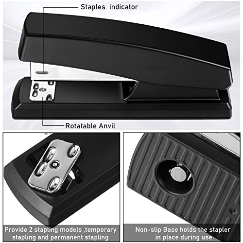 Creative Design: the office stapler and staples can provide you with reliable, clog proof and accurate binding, the non slip base can hold the stapler in place during use, providing you with a good use experience