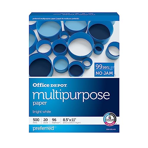 Make every document crisp and professional to ensure your ideas receive the attention they deserve. With a smooth finish and acid-free composition for lasting brightness, this Office Depot Brand Multipurpose Paper makes copies, handouts and other prints shine. ColorLok technology for bright colors and crisp text without smearing. Smooth, clean finish and precision-cut edges enable problem-free feeding. Acid-free Office Depot paper won’t yellow or fade over time. Versatile paper works well in most printers, copiers and all-in-ones. White multi-use paper is 8-1/2″ x 11″ (letter size). Multi-use paper (20 lb) comes in a ream of 500 sheets. Eco-conscious choice – has one or more meaningful eco-attributes or eco-labels.