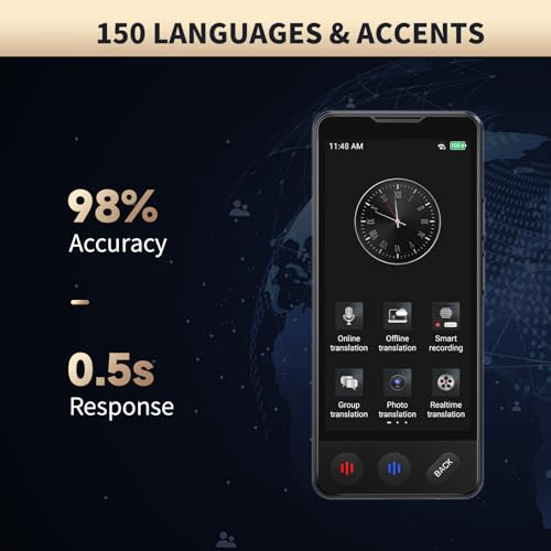 【AI Translator Supporting 150 Languages】A20 AI translator adopts the latest technology, ultra-fast and accurate translation, the response time is only 0.5 seconds, 98% real-time translation accuracy, and supports ChatpGPT, unit conversion, currency conversion. Our translator adopts the latest operating system, it will not freeze even after a long time of use, and it also supports OTA upgrade, allowing you to enjoy the latest features.