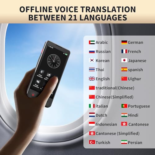 【Portable Size and Easy to Use】This portable translator is compact and lightweight, and can be easily carried in pockets and backpacks. The 5-inch high-definition touch screen allows you to easily read the translated text; the dual operation mode of touch buttons and physical buttons makes it easy for people of any age to use. It weighs only 100 grams.