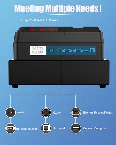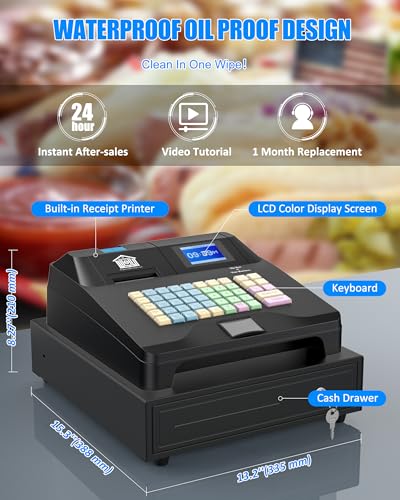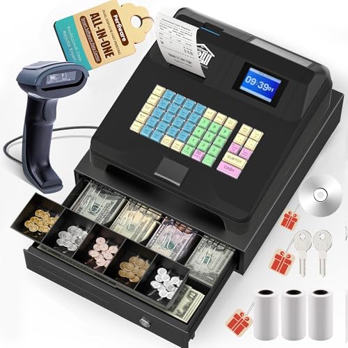 Newest Cash Register for Small Businesses with Scanner, Electronic Cash Registers with Dual Display for Cashier and Customer,Receipt Print& Cash Drawer with Check Port for Store/Restaurant