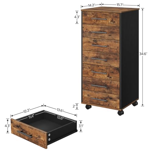 HOOBRO 7-Drawer File Cabinet, Wooden Office Cabinet with Drawers, Mobile Storage Filing Drawer for Home Office, Study, Easy Assembly, Rustic Brown and Black BF07WJ01