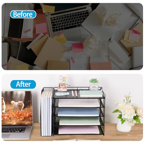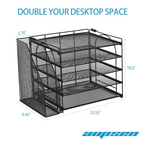 AUPSEN Desk Organizers and Accessories, 5-Tier Desktop Paper File Organizer with Removable File Holder, Desk Accessories & Workspace Organization for Home Office Supplies (Black)