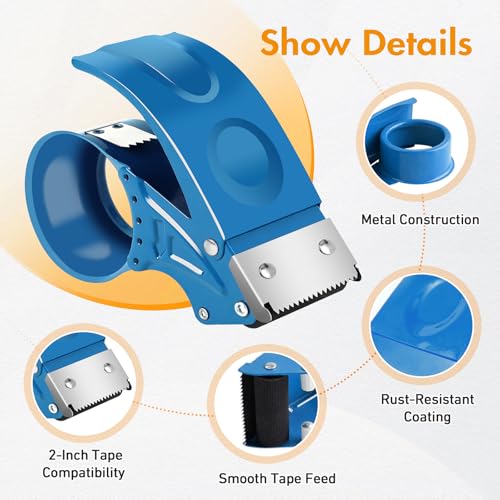 2-Pack Packing Tape Dispenser Guns: This set includes two 2-inch tape dispensers in blue, ideal for packing, shipping, and moving. Perfect for small businesses, home offices, or personal use, these tape guns help streamline your packaging process. Great for both light and heavy-duty tasks like sealing boxes and envelopes. A must-have for anyone who needs reliable tape dispensers for everyday use.