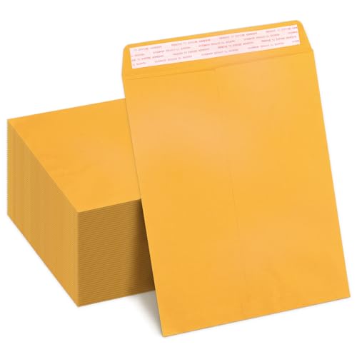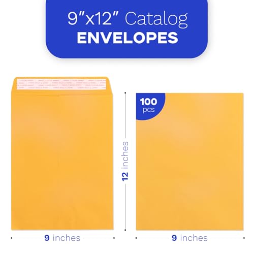 Large Envelopes 9×12: Yellow envelopes 9×12 come in a set of 100 with a sturdy box, professional look, and nice feeling; the catalog envelopes can be easily addressed or labeled, and the self-sealing design is a great time saver for your household, office, business, legal mailing and more