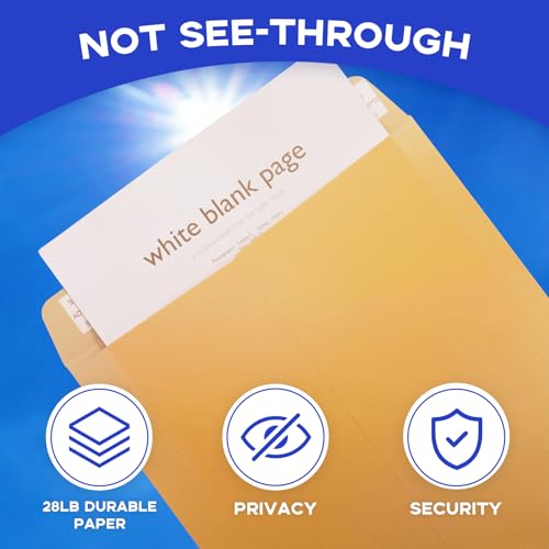 Security Envelopes: Our mailing envelopes 9×12 are made from 80 GSM of thick golden kraft paper with excellent tear, rip, and puncture resistance; cannot see through and protects your privacy