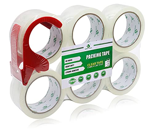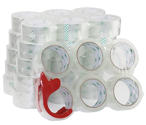 BOMEI PACK 36 Rolls No Noise Silent Clear Packing Tape with Free Dispenser, 2.4mil x1.88 x 55 Yard, Quiet Packing Tape, Heavy Duty Packaging Tape for Moving, Shipping, Office and Storage
