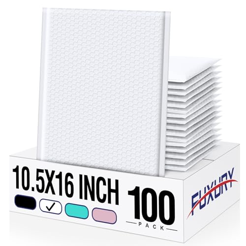 Fuxury 100 Pack Bubble Mailers 10.5×16″ Thick Padded Envelopes Large Mailing Envelopes Opaque Bubble Padded Cushioning Mailers Bubble Bags for Packaging Small Business#5 White