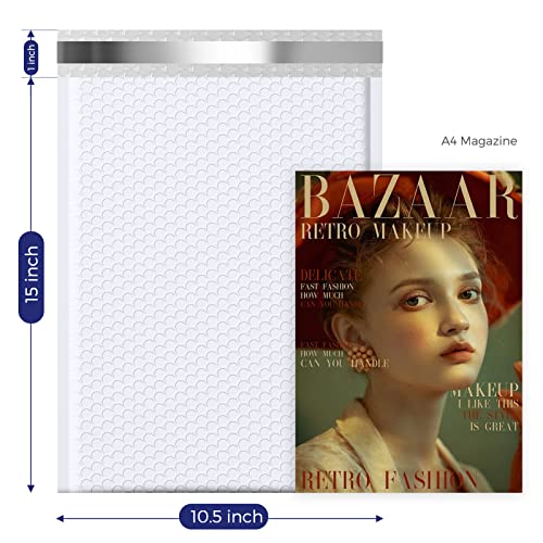 【Perfect Size】The opaque white bubble mailers outer size is 10.5×16 inch, while the inner size is 10.5×15 inch.It is very suitable to transport for clothing, shirts, books and more and more.