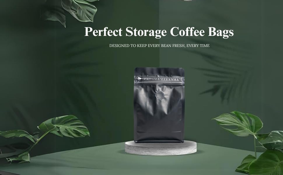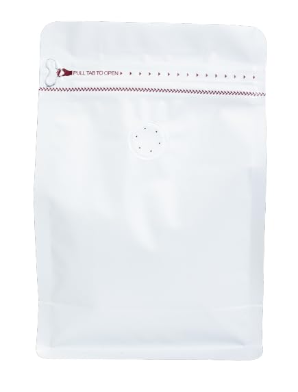 Premium Coffee Bags with Valve (50 pcs, 8 oz) Standing Coffee Beans Storage Bags, Reusable Heat Sealable Side Zipper Pouches, Eco-Friendly Packaging, Perfect for Home and Office – White