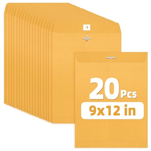 SUNEE 9×12 Clasp Envelopes 20 Count – 9×12 Inch Brown Kraft Envelopes with Clasp Closure – for Home, Office, Business, Legal or School, Great for Filing, Storing or Mailing Documents