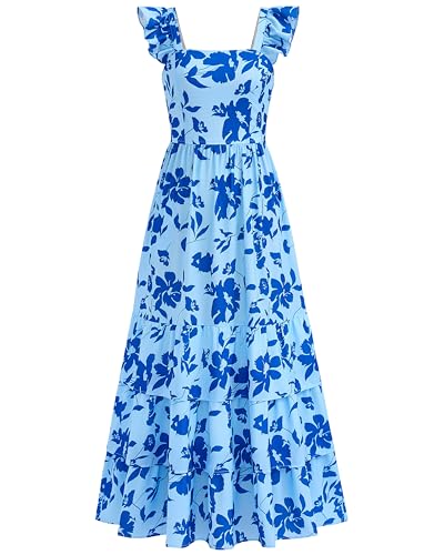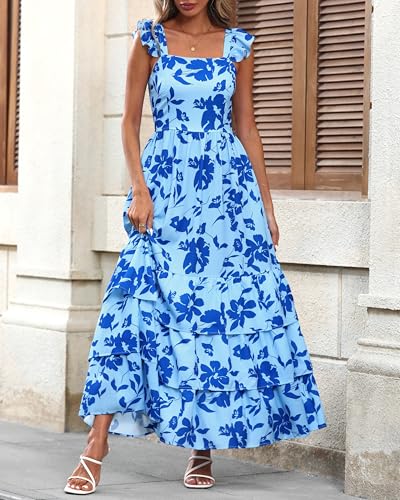 dowerme Summer Dresses for Women 2025 Casual Ruffle Smocked Tiered A-Line Boho Floral Maxi Beach Sun Dress with Pockets
