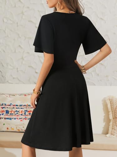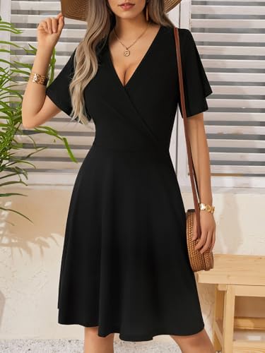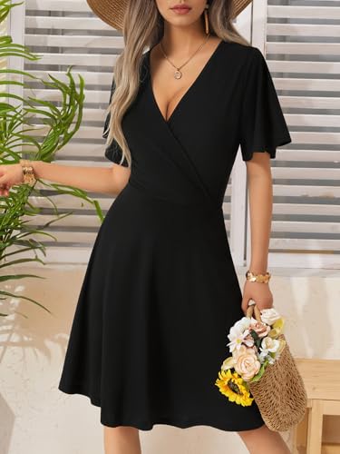 FENSACE Womens Sundress Summer Floral Short Sleeve Wrap V Neck A-Line Midi Dress