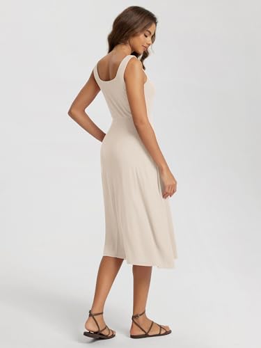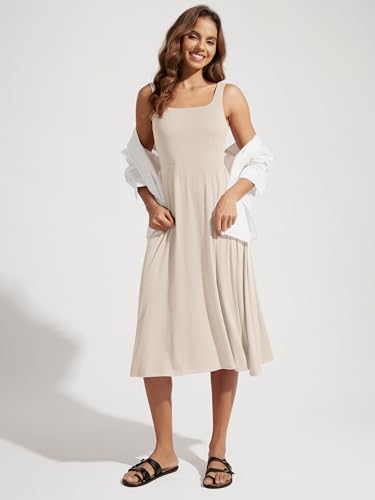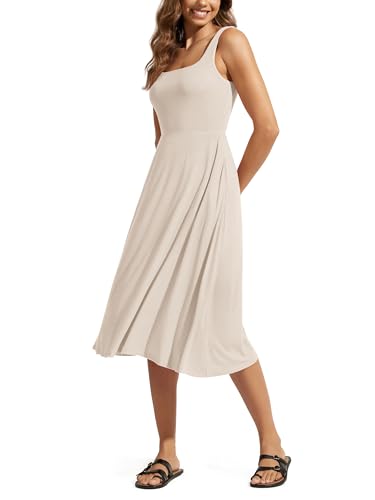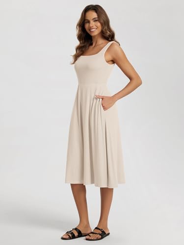 ODODOS Square Neck Midi Dress with Pockets for Women Summer Casual Sleeveless Sundress Flare Tank Dress