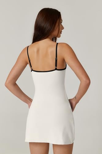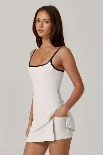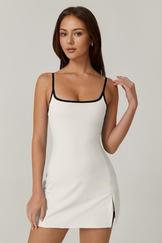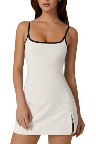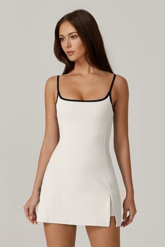 QINSEN Womens Spaghetti Strap Tennis Dress with Shorts Workout Side Slit Active Golf Dresses
