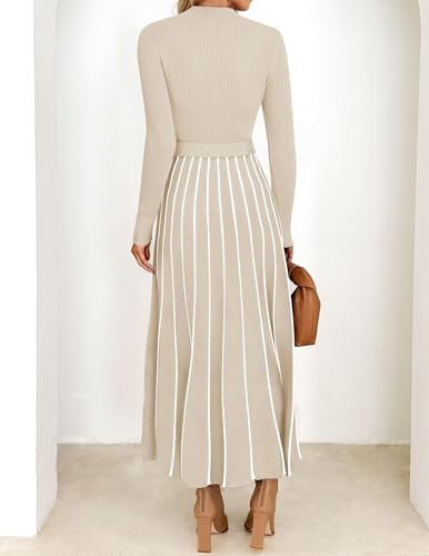 ZESICA Womens 2025 Fall Turtleneck Long Sleeve Sweater Dress Tie Waist Casual Loose Ribbed Knit A Line Midi Dresses